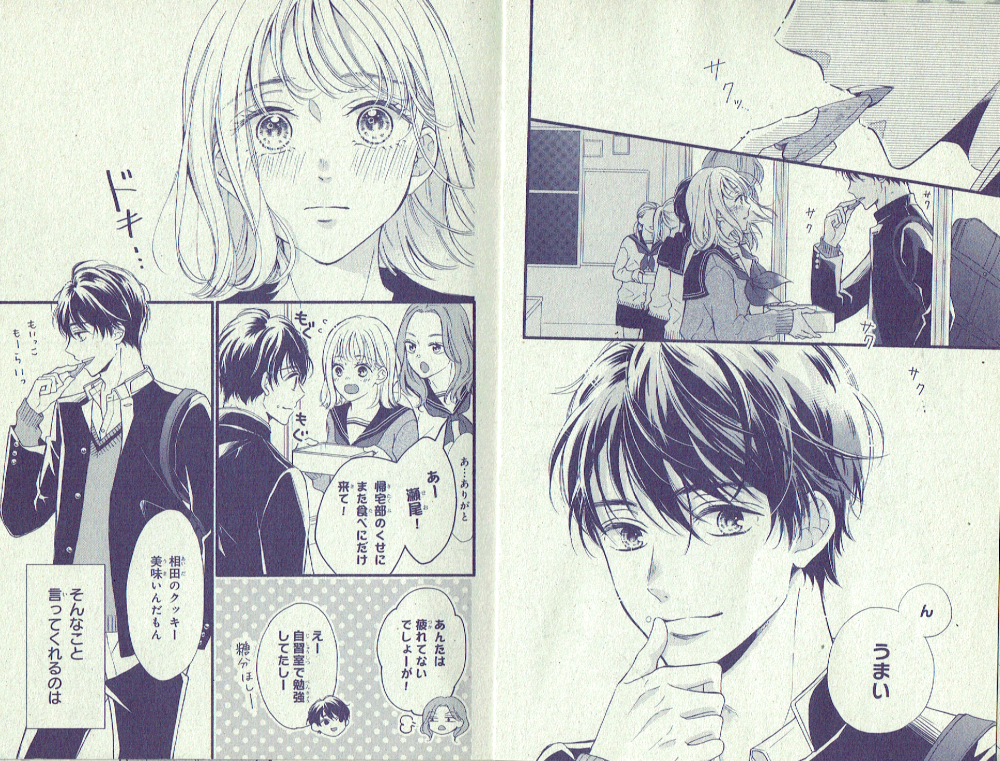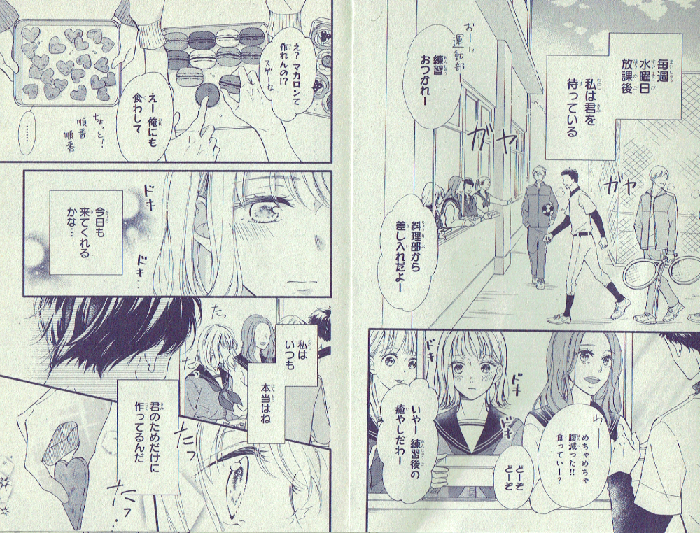 それは、特別じゃない告白(読切シリーズ第1話) 講談社デザート 別冊付録(2020年10月号)掲載 料理部の直は、いつも自分の地味なクッキーを食べに来てくれる瀬尾のことが好き。バレンタインに何か渡したいと思うけれど・・・という話。「瀬尾のために」一生懸命告白します! 購読する 戻る