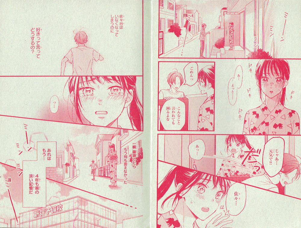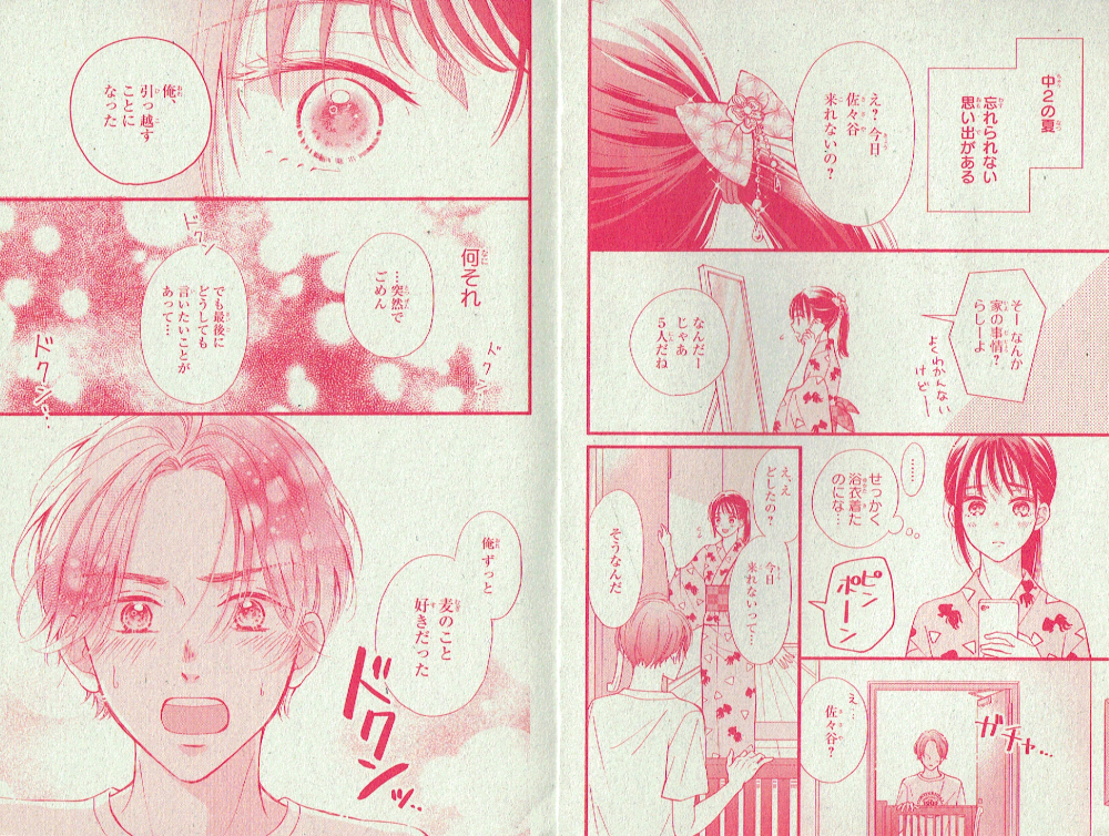 夏の終わりと消えた告白(読切シリーズ第3話) 講談社デザート 別冊付録(2021年2月号)掲載 恋に奥手な麦には、忘れられない思い出がある。それは中学の時、同級生の佐々谷が引っ越す前にしてくれた告白・・・きっともう会えないと思っている麦の前に、4年ぶりに彼が現れて・・・という話。切ない花火大会を見届けてください! 購読する 戻る