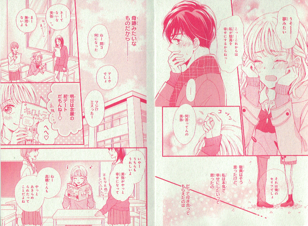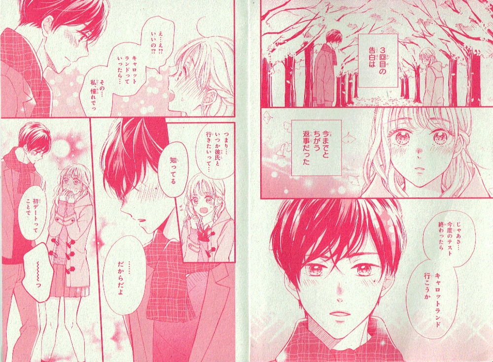 告白は、ハッピーエンドのあとで(読切シリーズ第4話) 講談社デザート 別冊付録(2021年4月号)掲載 3回目の告白で、大好きな聡真にやっと付き合ってもらえた美弥。聡真を幸せにするために、テーマパークデートを計画するけれど・・・という話。最後は幸せいっぱいです! 購読する 戻る