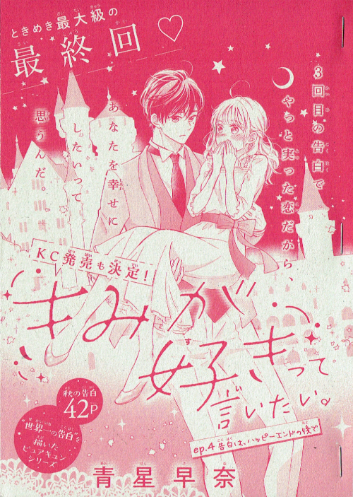 告白は、ハッピーエンドのあとで(読切シリーズ第4話) 講談社デザート 別冊付録(2021年4月号)掲載 3回目の告白で、大好きな聡真にやっと付き合ってもらえた美弥。聡真を幸せにするために、テーマパークデートを計画するけれど・・・という話。最後は幸せいっぱいです! 購読する 戻る